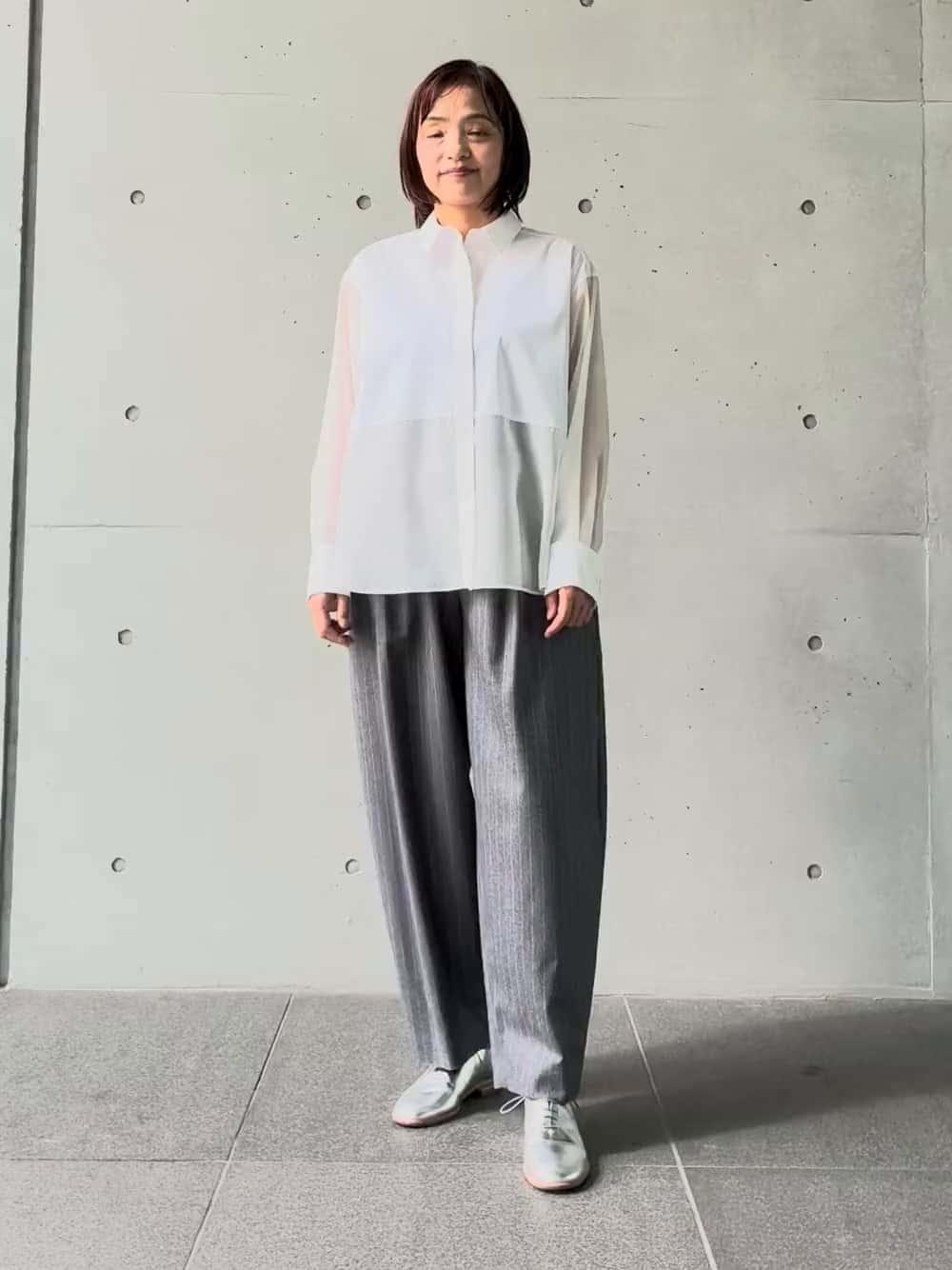 ブラウスは程よいゆったり加減で着やすく、ヒップが隠れる丈がありがたいです。肌触りも良く、袖のシアーが素敵です。