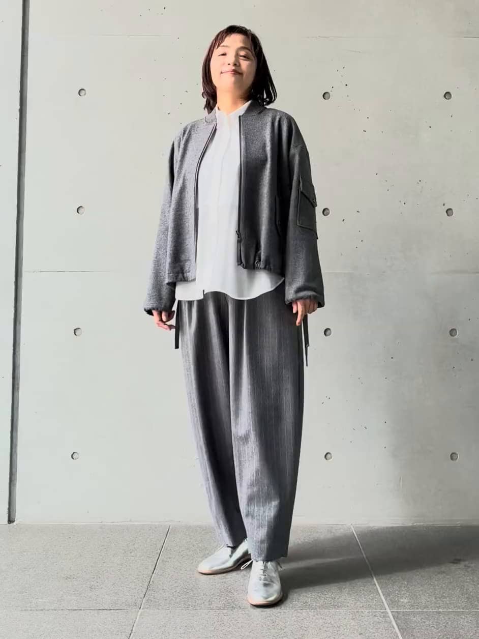 ジャケットはハリ感があるのに軽くて、柔らかさもありカッコ良く着れます。袖のポケットと裾の絞れるリボンが可愛い。少しゆったり目で着やすいです。