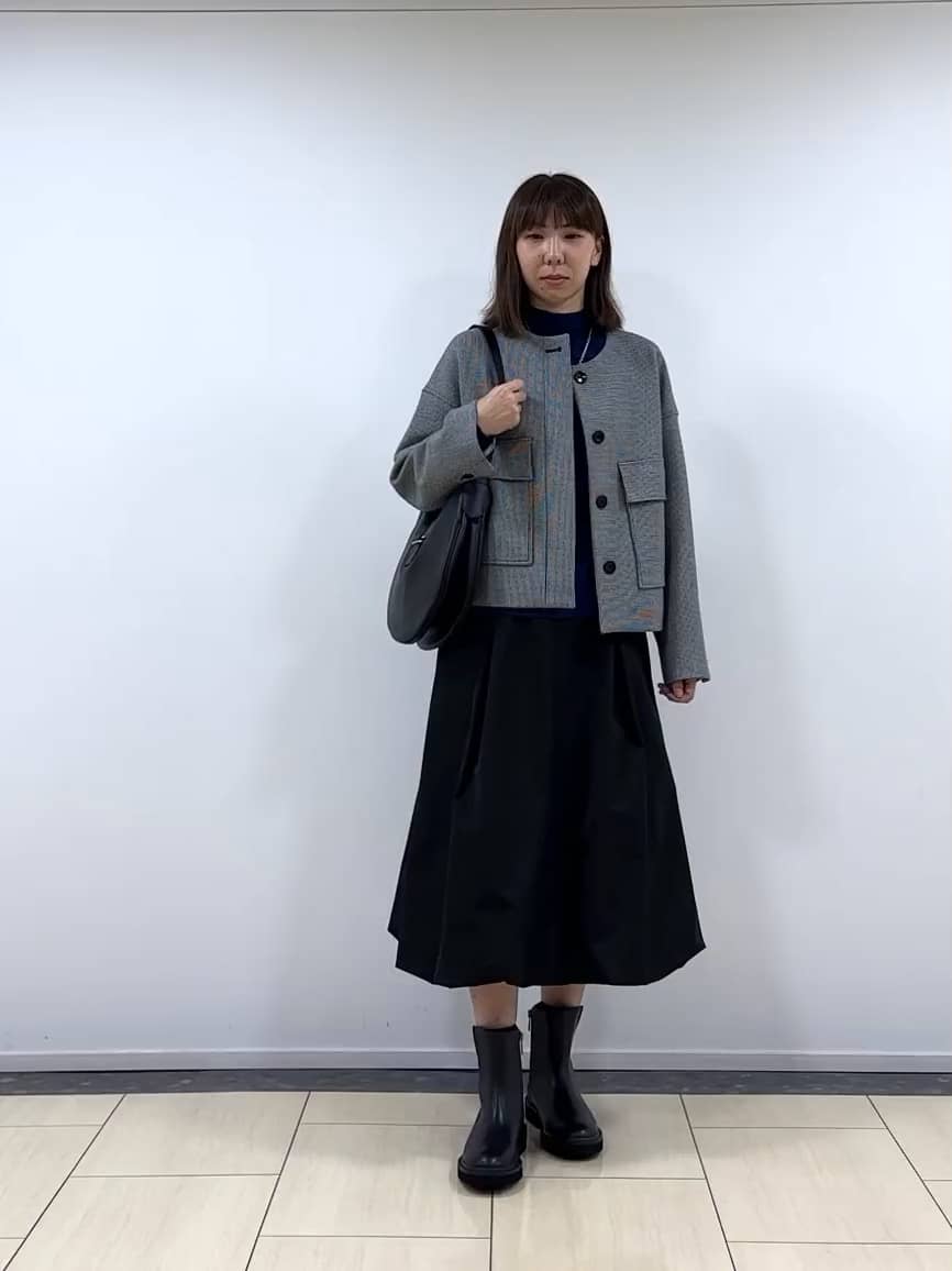着用感:ノーカラーの襟元と中ヒップ丈でデイリーに合わせやすいライトジャケットです。