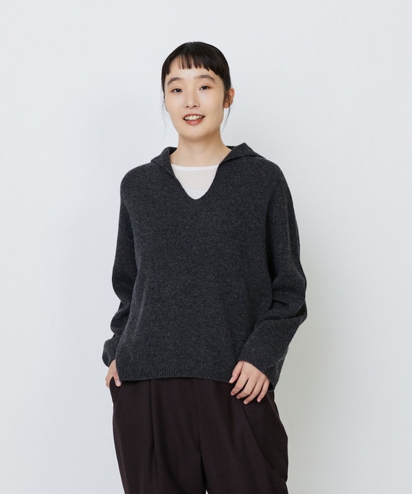 |2BUY10%OFF・3BUY20%OFF|【11月お気に入り登録ブランド内5位】ホールガーメントカシミヤ混天竺セーラーカラープルオーバー