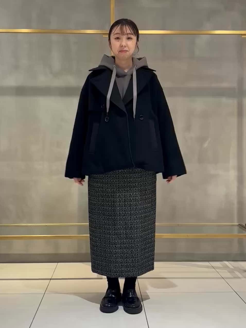 軽くて温かいブラックコートに、モカのフードトップスを合わせた今季おすすめレイヤード。膨らみのある素材で着心地も◎。スラブツイードスカートで上品さとカジュアル感をプラスしました。秋冬らしいきれいめカジュアルスタイリングです!