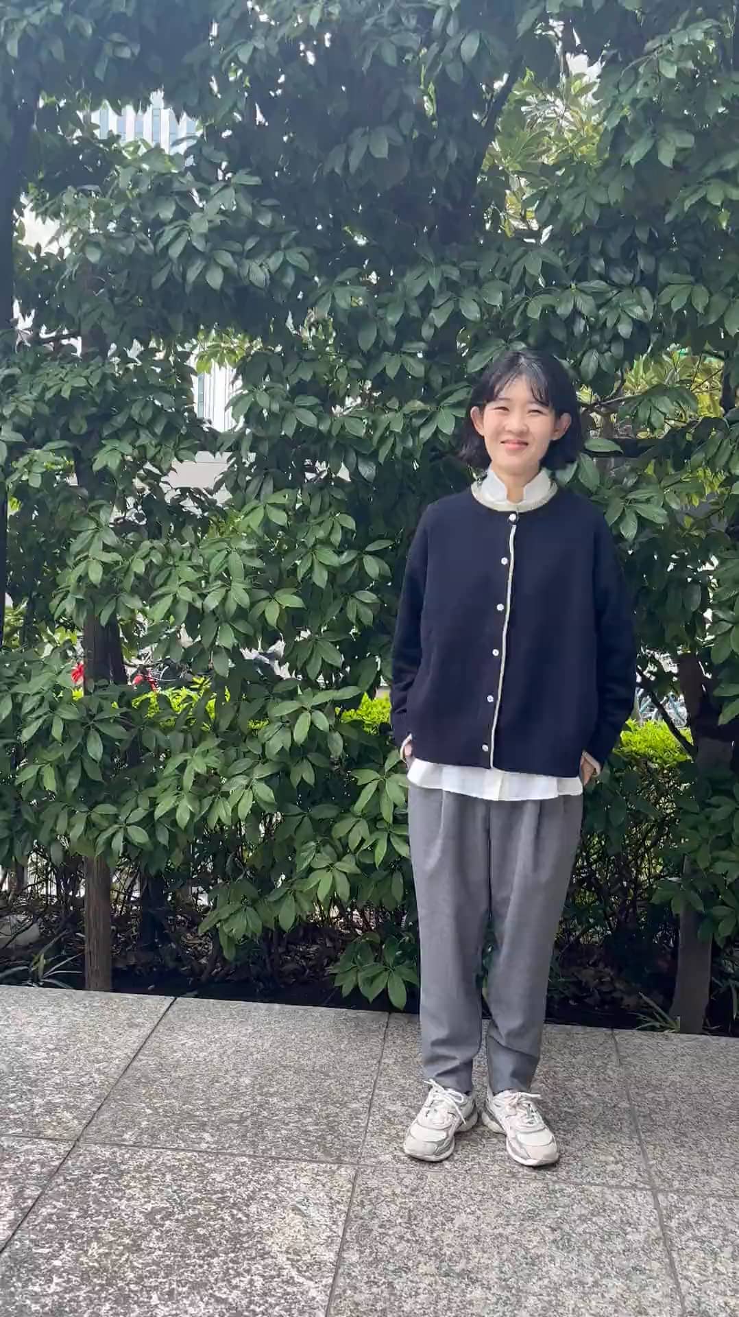 トラッドな印象のジャケットにジョッパーズパンツを合わせてキレイめに。と思いきやスニーカーでカジュアルダウン👟♡レイヤードしたリネンのブラウスを、裾や襟元からチラ見せするのもポイントです。