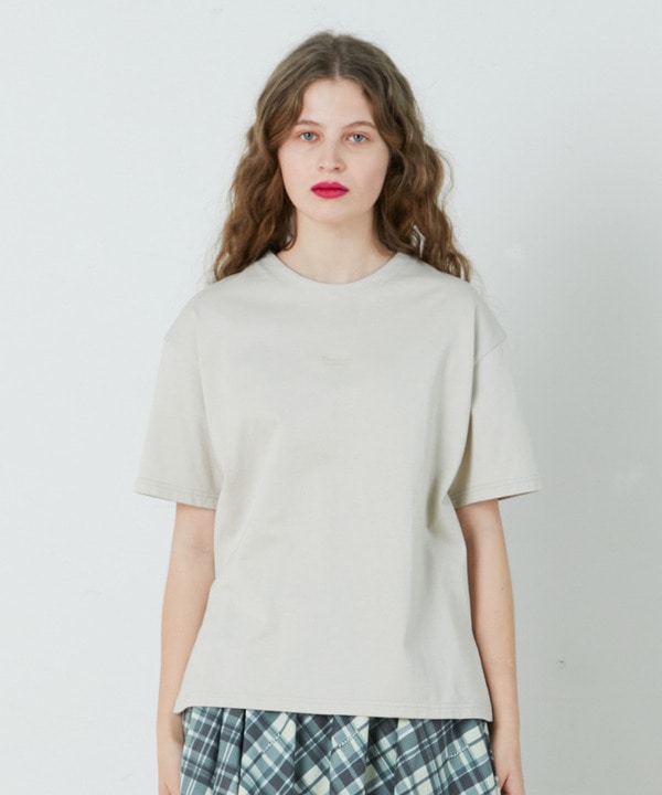合わせたTシャツは胸元にフラボアのロゴが刺しゅうされていて、大きく開いたVネックのベストからしっかり見えるデザインです。
