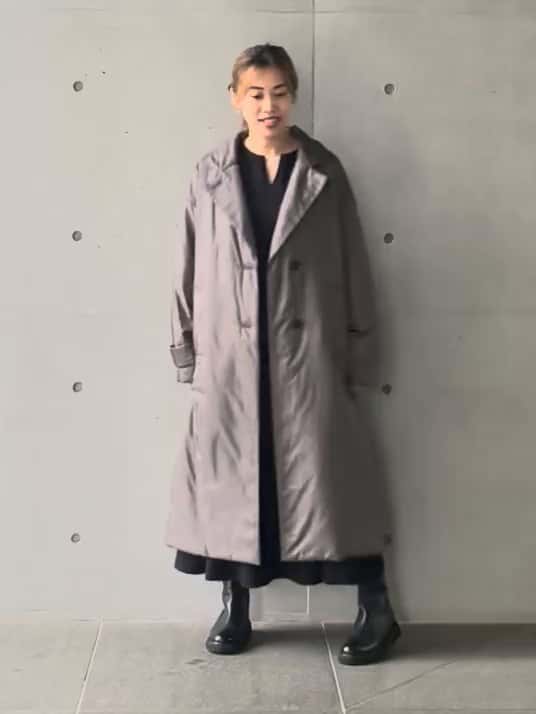 軽くて暖かいコクーンコートは旅行の移動にも便利。前を開けて着てもすっきり見えます。