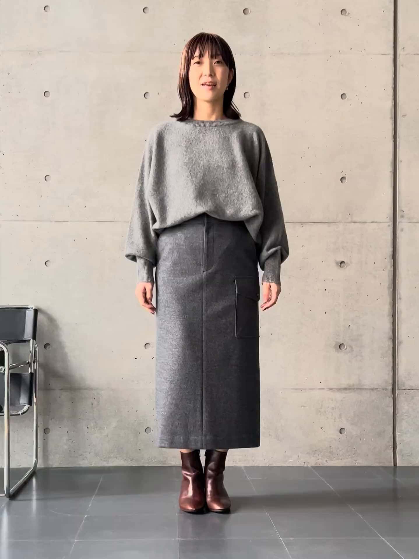 グレーでまとめて、すっきりとした大人のコーディネートに仕上げました。