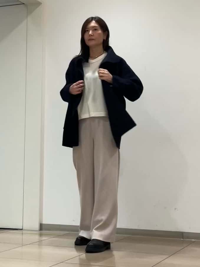 毎年人気のワイドパンツを合わせて、抜け感のある上品な冬スタイルに仕上げました。