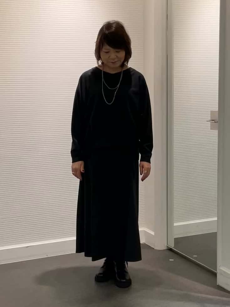 フレアースカートはヨーク切り替えで腰まわりをすっきり見せ、動くたびに揺れる上品な印象に。グレーのワントーンでまとめれば、きちんと感のある大人のスタイルが完成します。