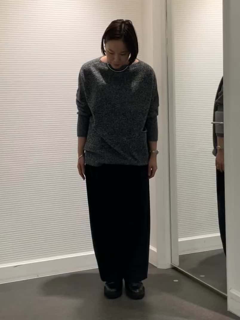 人気のラム×カシミヤのニットは、軽くて膨らみがあり着心地も抜群です!細めの袖ときれいなネックラインで、大人カジュアルにぴったり◎