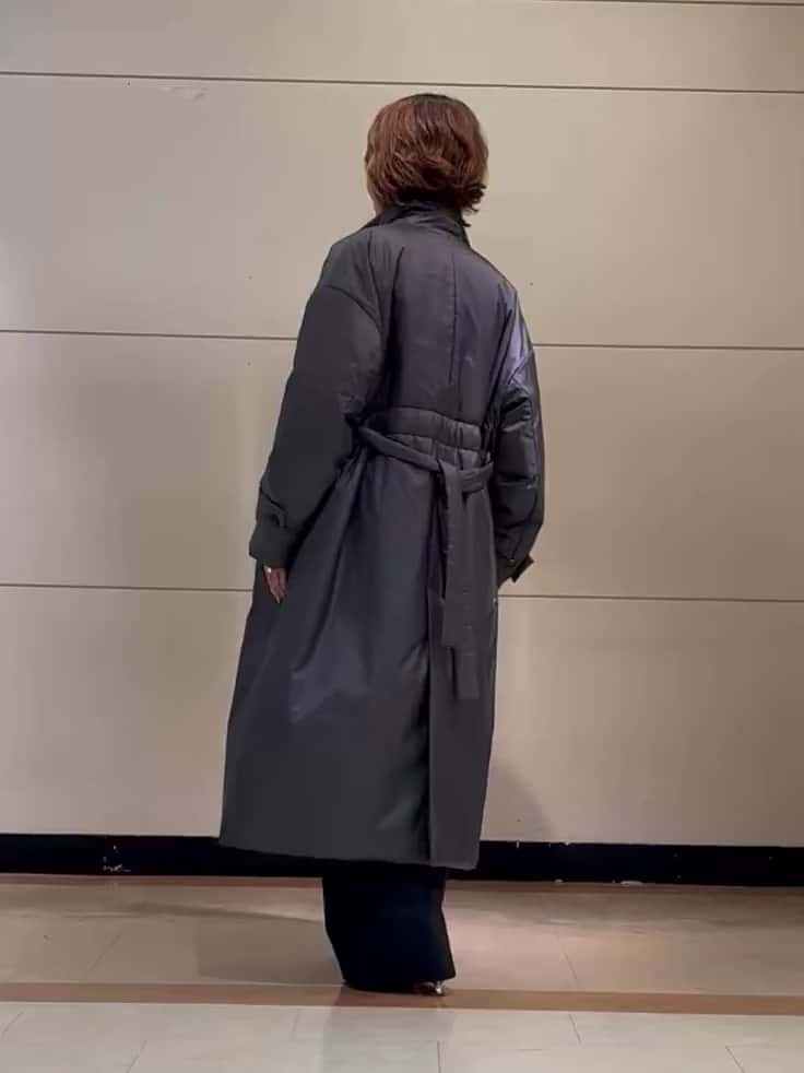 軽くて暖かい中綿コート。ダウンコートよりもすっきり着こなせるデザインです。
