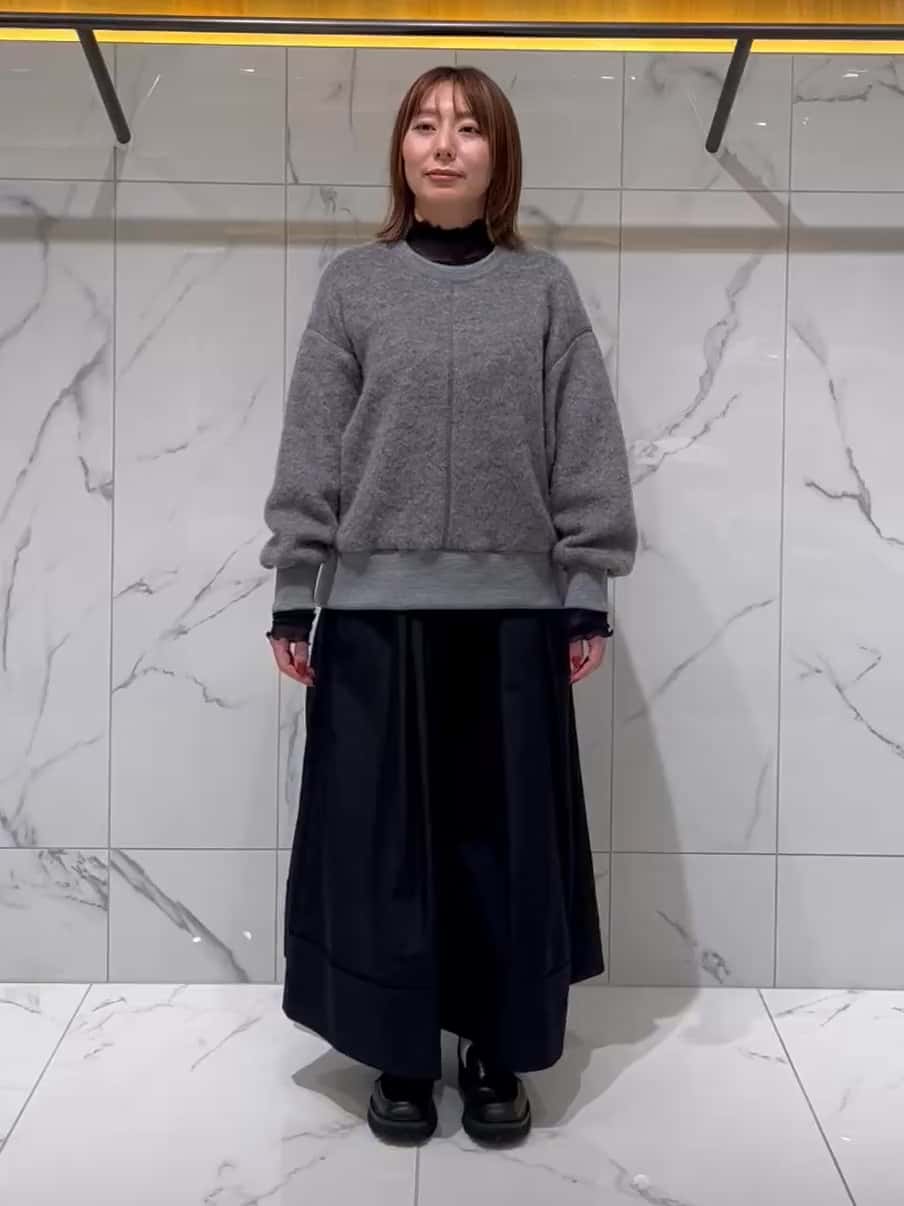 ふんわり柔らかなウールシャギー素材のトップスは、軽くてあたたかく、ニットのような優しい着心地。ラフな飾りステッチがさりげないポイントです。インナーには透け感のあるメッシュトップスをレイヤードして程よい抜け感をプラスしました!