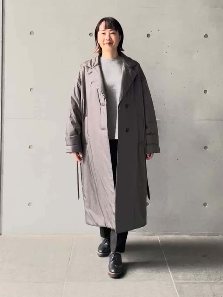 軽くて暖かい中綿入りのコクーンコートは、後ろのベルトデザインがさりげないポイント。