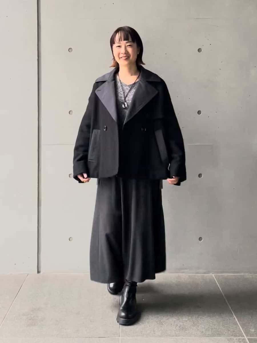グレー×ブラックの配色で、冬に映える大人のきれいめスタイルです。