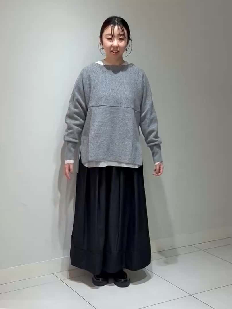 配色の切り替えがさりげなく効いたニットは、ゆるっと着るだけでニュアンスのあるシルエットに。