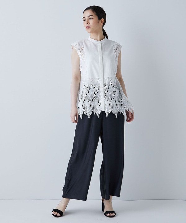 ドレスシャツのディテールがマニッシュなレースブラウスに