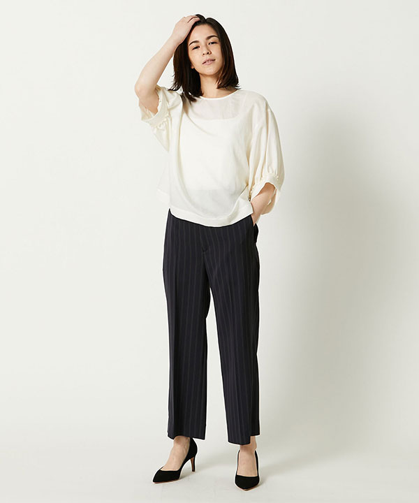 着丈が長めですので、細身のパンツとのコーディネートや、