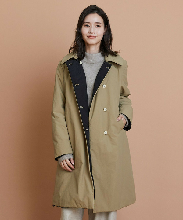 襟が取り外しできたり、バイカラーに付け替えができる中綿入りのコート。