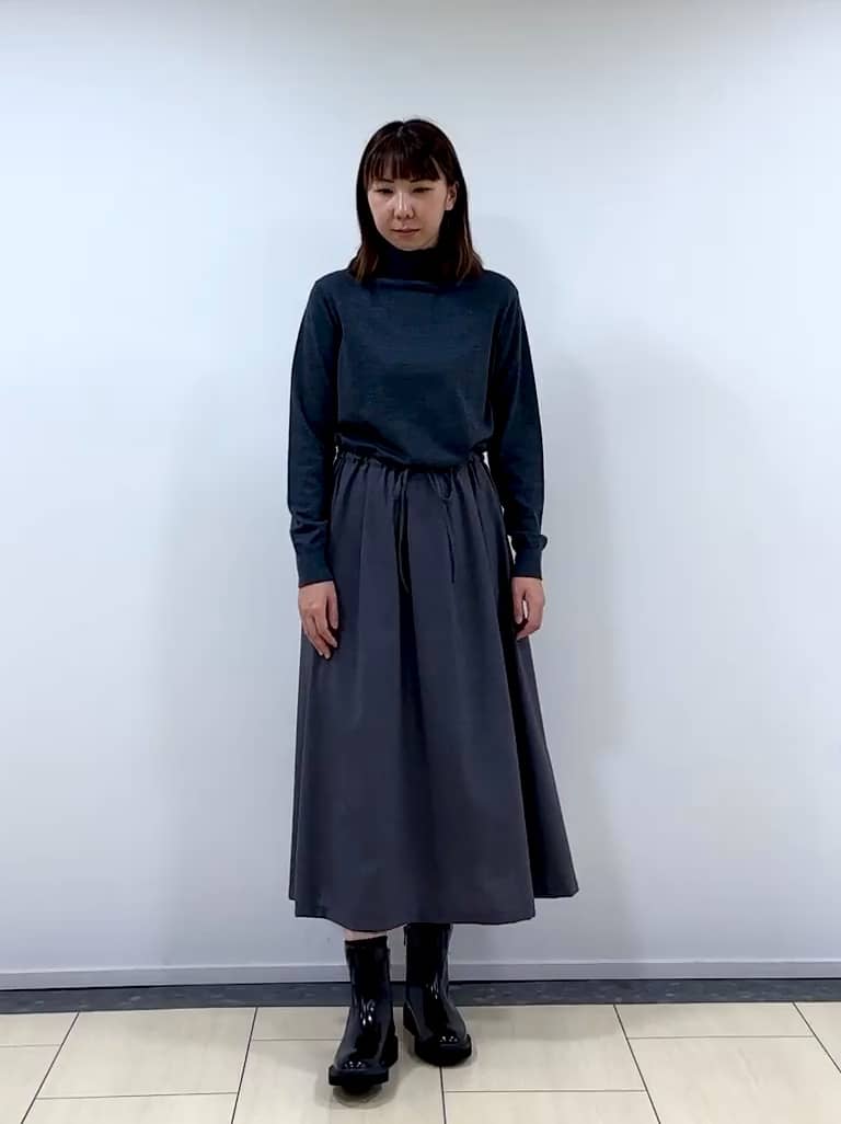 トップスはすっきりとしたニットタートル、ウエスト切り替えから下は