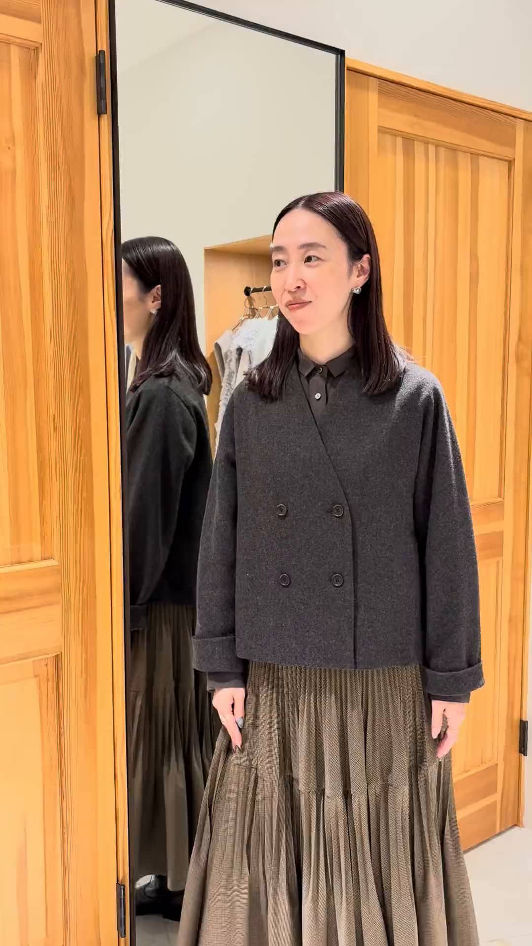 ツイードジャケットはとても軽い着心地でカーディガン感覚で着用できるところが気に入りました◎たっぷりとってある袖丈は、折り返せる仕様がうれしい☺️