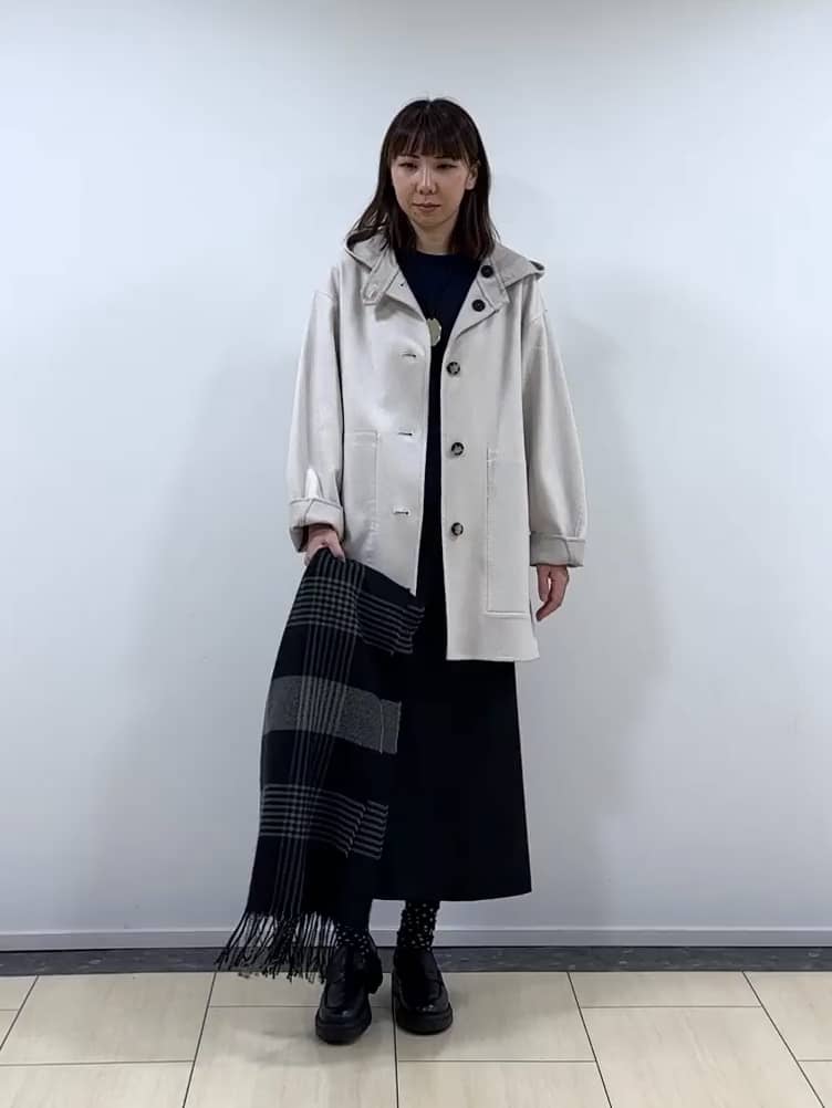 コクーンのシルエットが女性らしく、小さめのフードもポイントです!