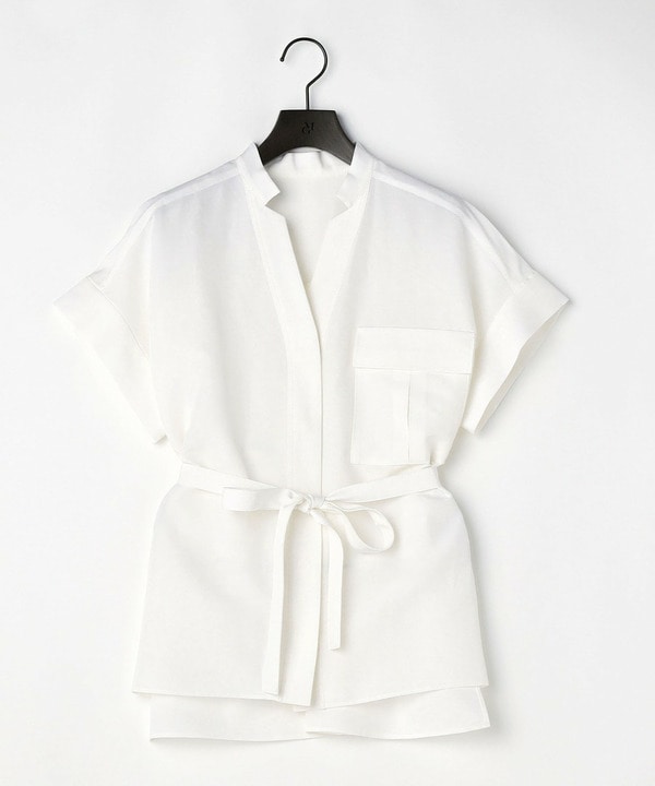 ストレッチの効いたビスリネンのシャツはベルトの有無で雰囲気が変わります。