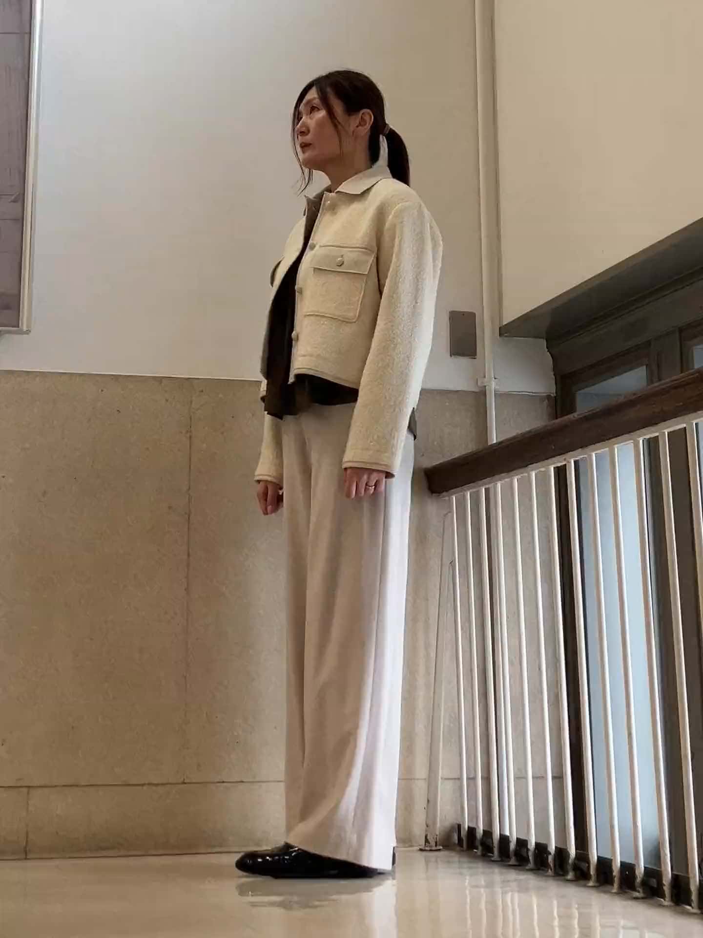 軽さのあるツイードジャケットは、糸の表情が上品で、ほぐしデザインがほどよいラフさを添えてくれます。リラックスした形で、きれいめにも普段にも使いやすい一枚です。