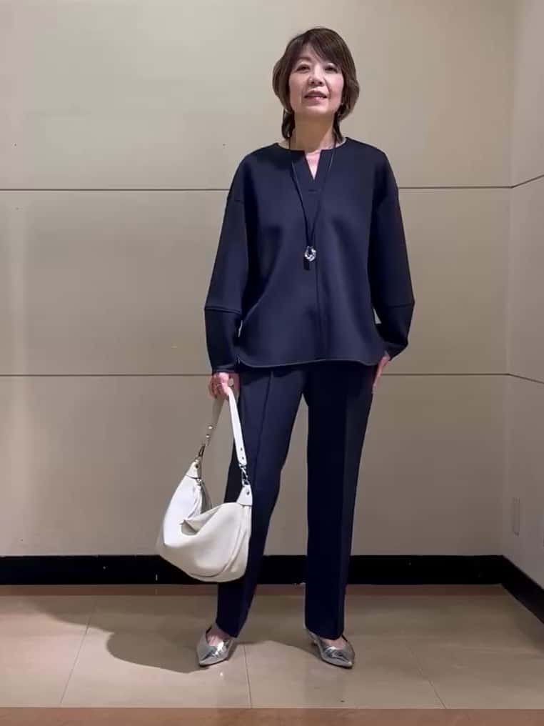 程よい厚さの高級ダンボール素材。美脚シルエットのパンツは体のラインを拾いづらくスッキリ見えます。