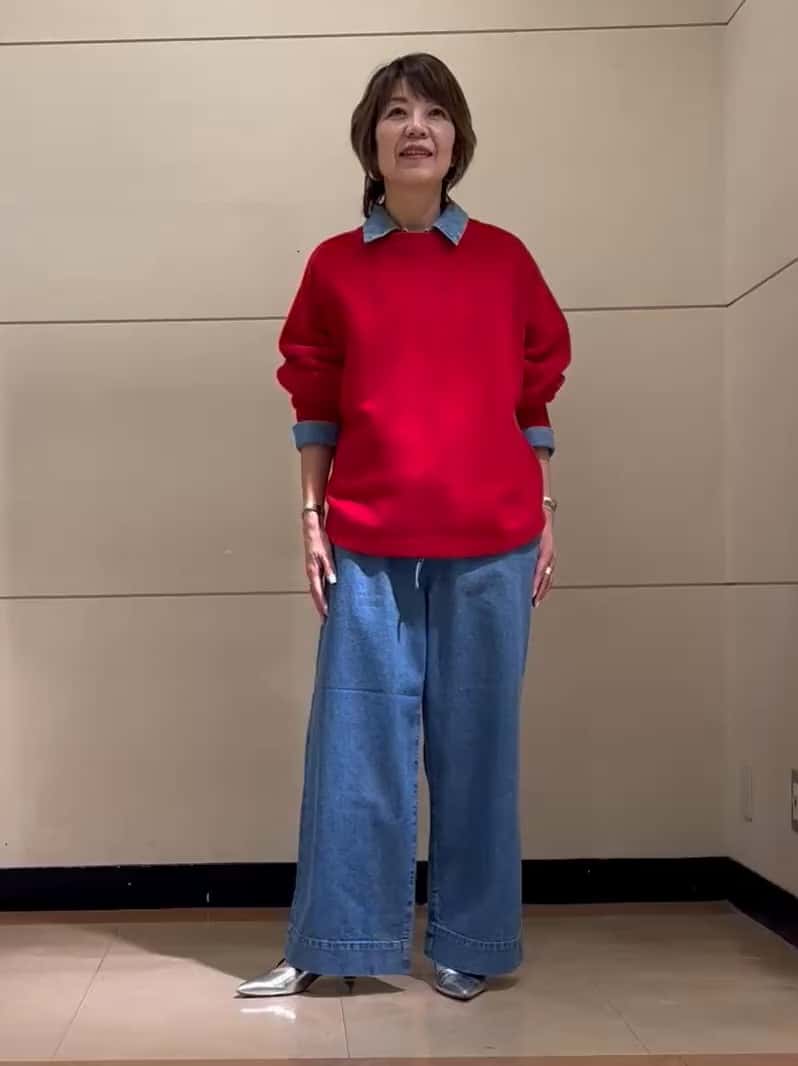 今回はデニムのシャツブルゾンにレイヤードして着用しています◎