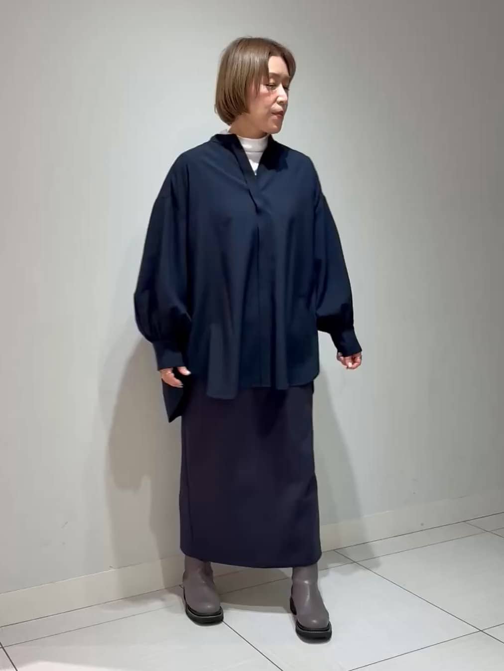 ギャザーと肩がドロップした形で、ゆとりのある見え方です。羽織りにもでき、汎用性の高い1着です◎スカートは太めの縫い目がポイントで、縦のラインがすっきり見えます。