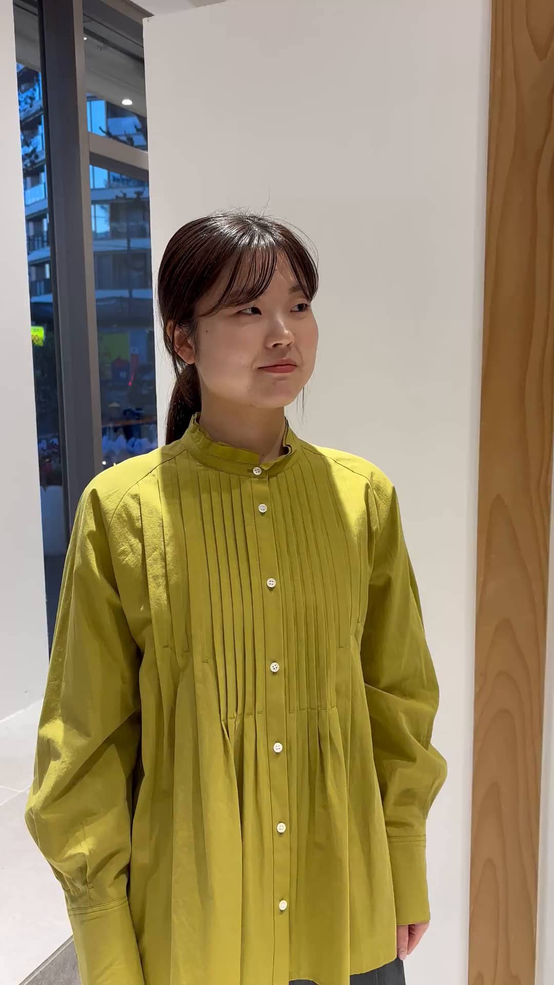 パッと目を惹くピスタチオカラーグレーと合わせるとアンニュイな雰囲気に。春先1枚で決まる1着です🌱
