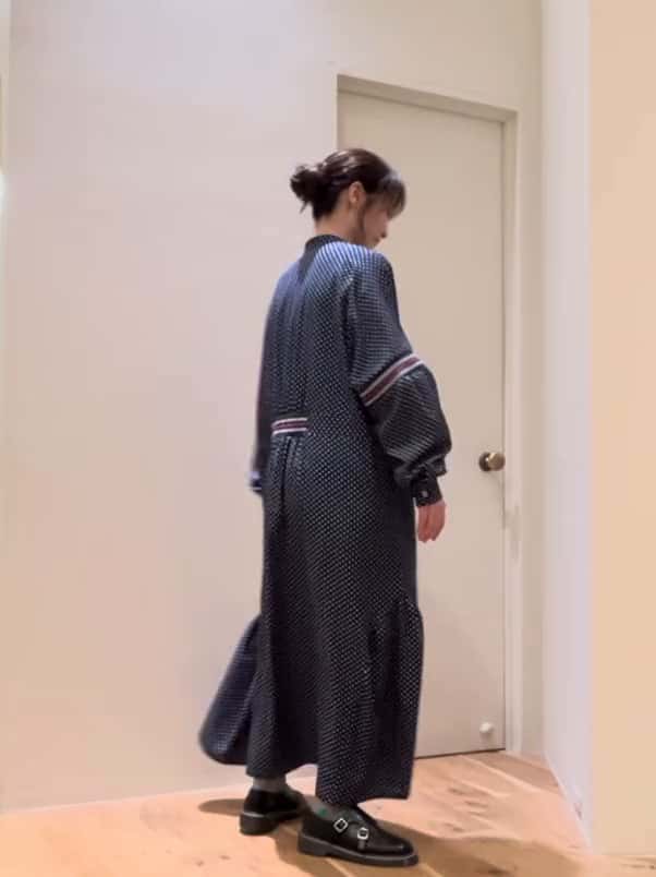 着用感:光沢感のあるきれいめ素材のワンピース。
