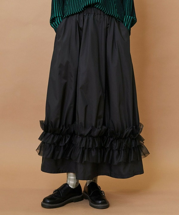 水を弾く、丈夫な素材を使用しており、デザインだけでなく機能性にも優れたスカート。