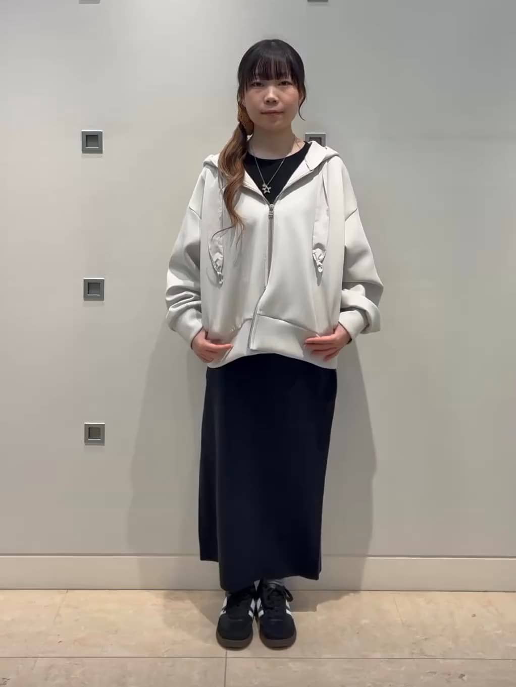パーカーはハリ感のある素材で後ろ姿もかわいいです。