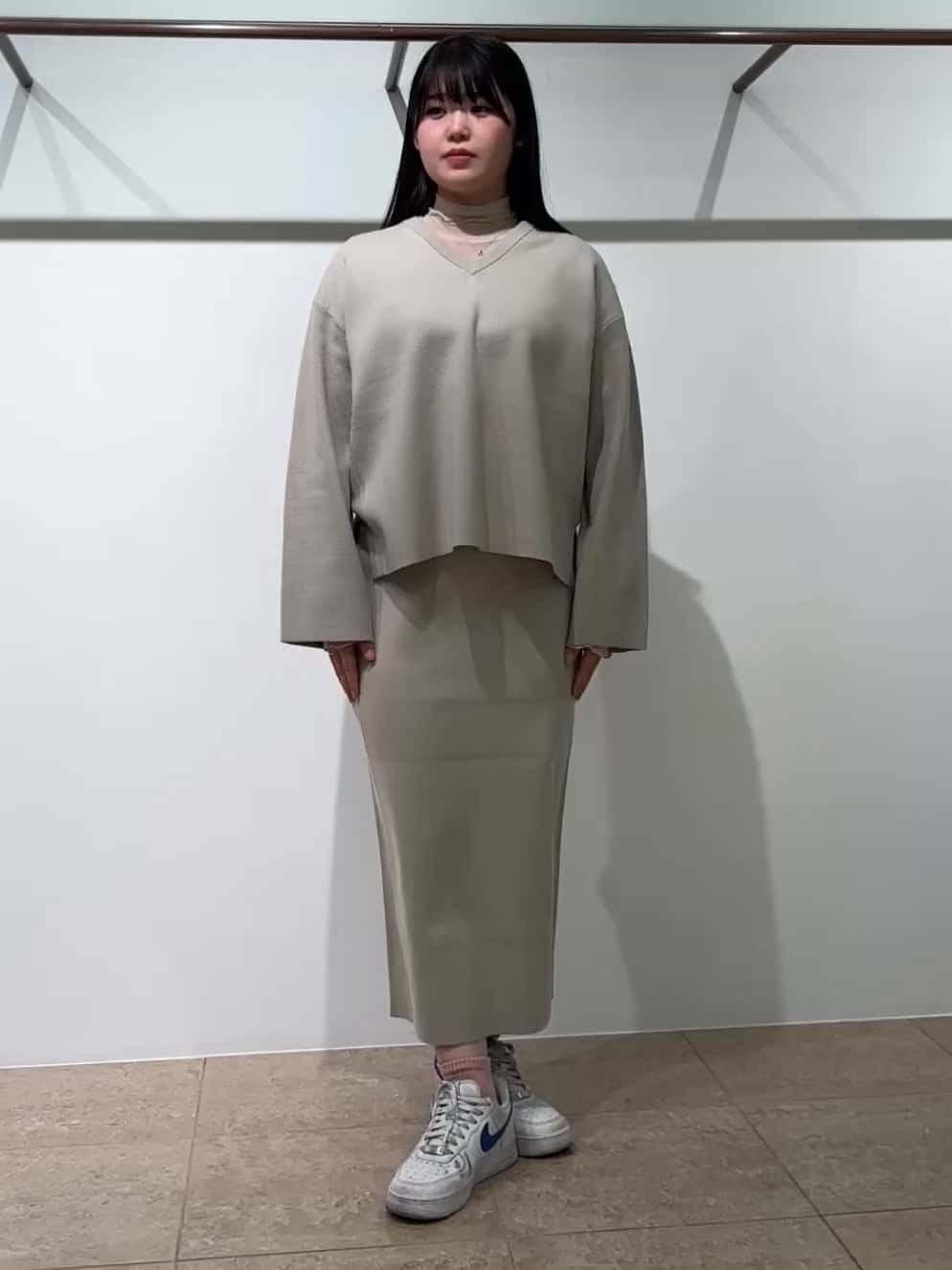 同じ編地のニットのセットアップ。