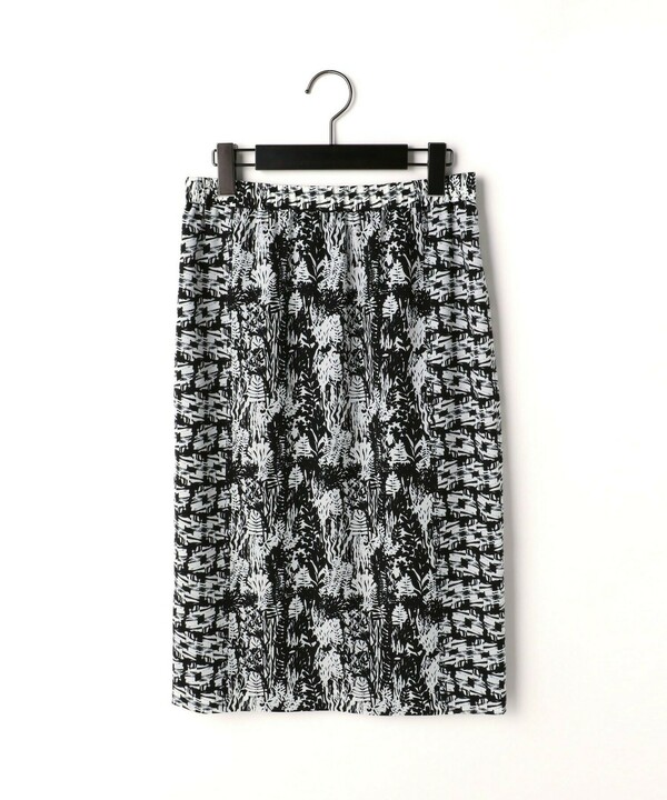 デザインポイントのブラウスと同プリントのタイトスカートと