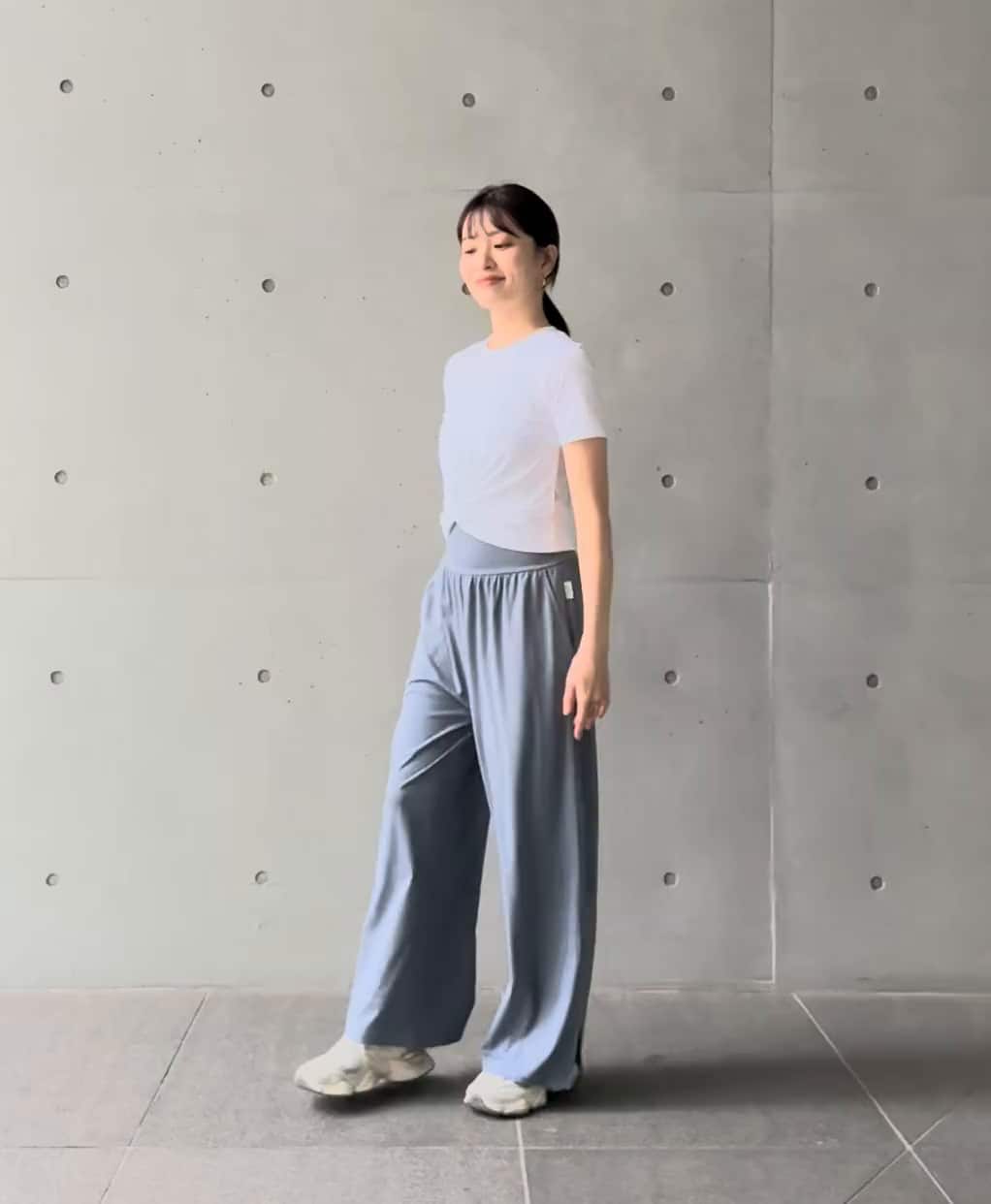 締め付け感のないワイドパンツは、ワークアウトはもちろん、リラックスしたい日にも大活躍。