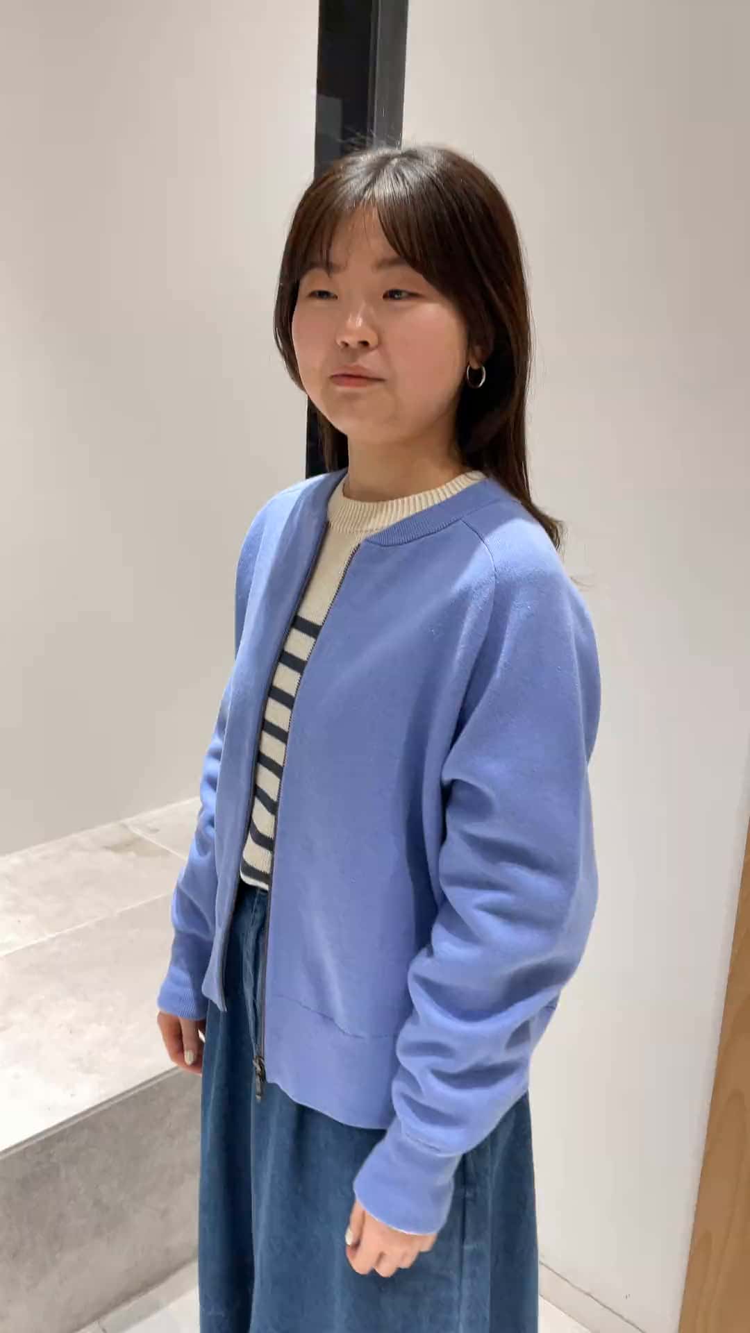 ブルゾンとしてもスウェットとしても差し色になる綺麗な色。すみれ色🩵中は夏まで着られそうな上下セット⚓️