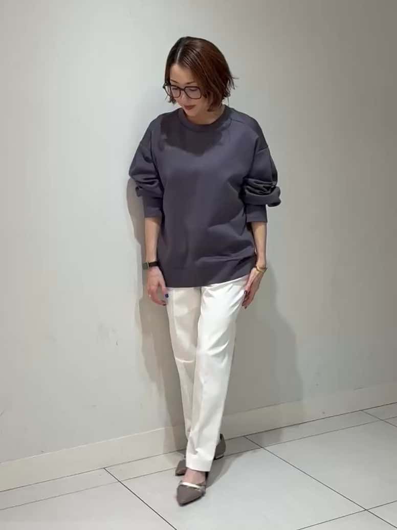 154cmで、フラットシューズで合わせられるフルレングスの丈感です。ウエスト周りも1サイズで程よいゆとり。白パンツは透けが気になりがちですが、これは本当に透けにくく、安心して穿けるのが嬉しいポイントです!