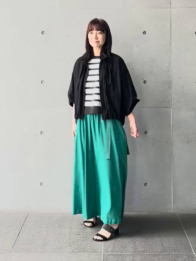 ⬛︎ ギャザーフレアスカート(グリーン・2サイズ着用)