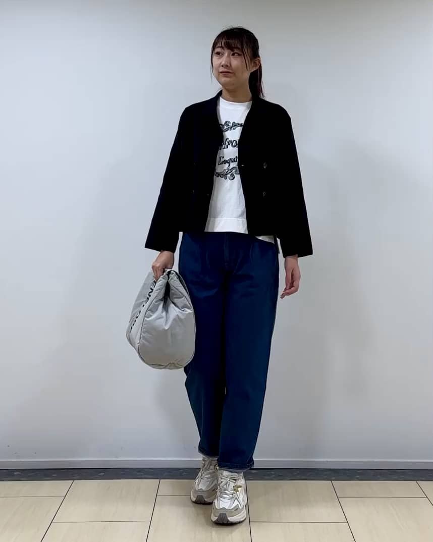 着用感:レキップ定番のテーパードのデニムパンツ。ストレッチ性のある生地は、生地感が薄くて軽く、通年お使いできる万能パンツ。