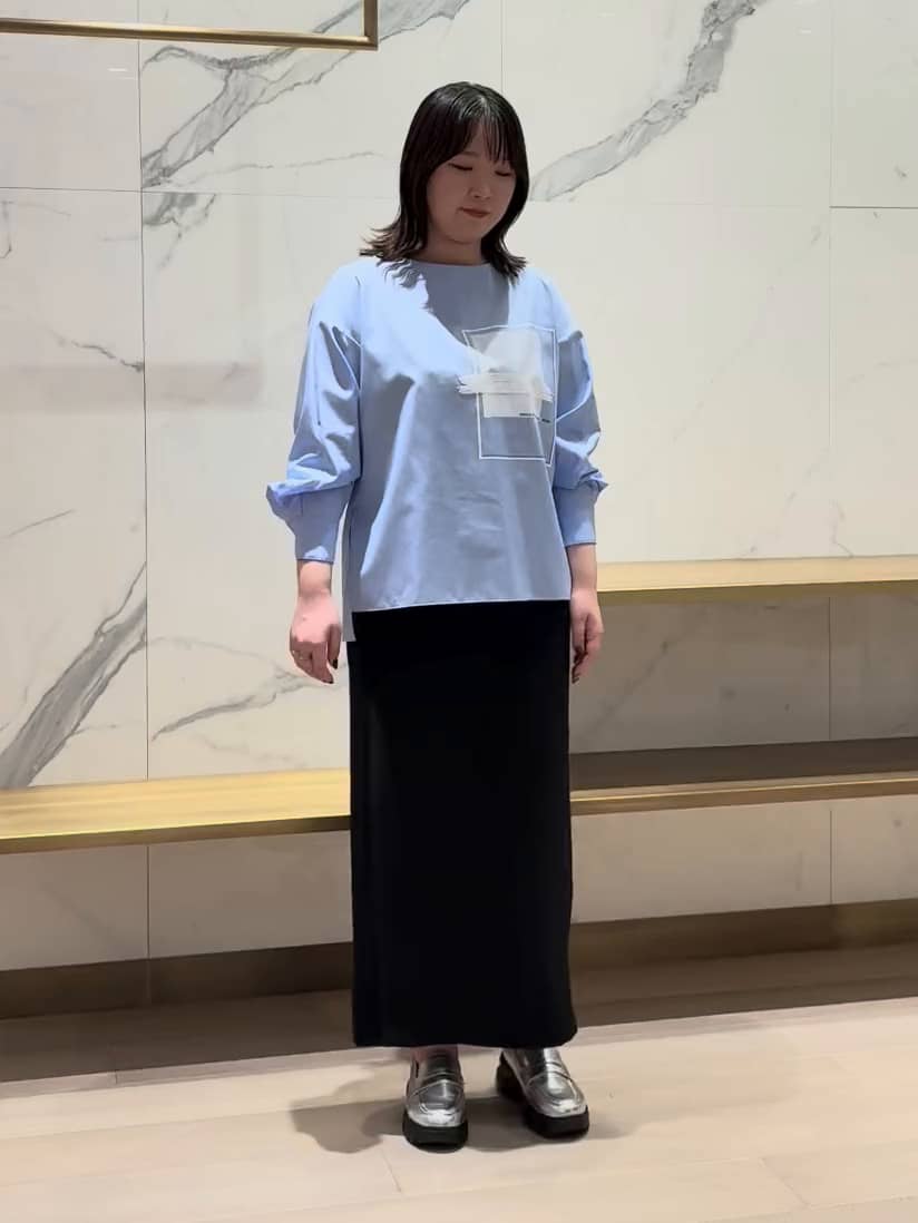 167cmの私が着て、身幅に程よいゆとりがありつつ、ボートネックのラインがデコルテをスッキリと見せてくれる絶妙なサイズ感です。コットン100%とは思えないハリと柔らかさがあり、きれいめな「ロンT」感覚で気負わず着られるのが魅力。フロントのアートプリントが、アクセントになっています。