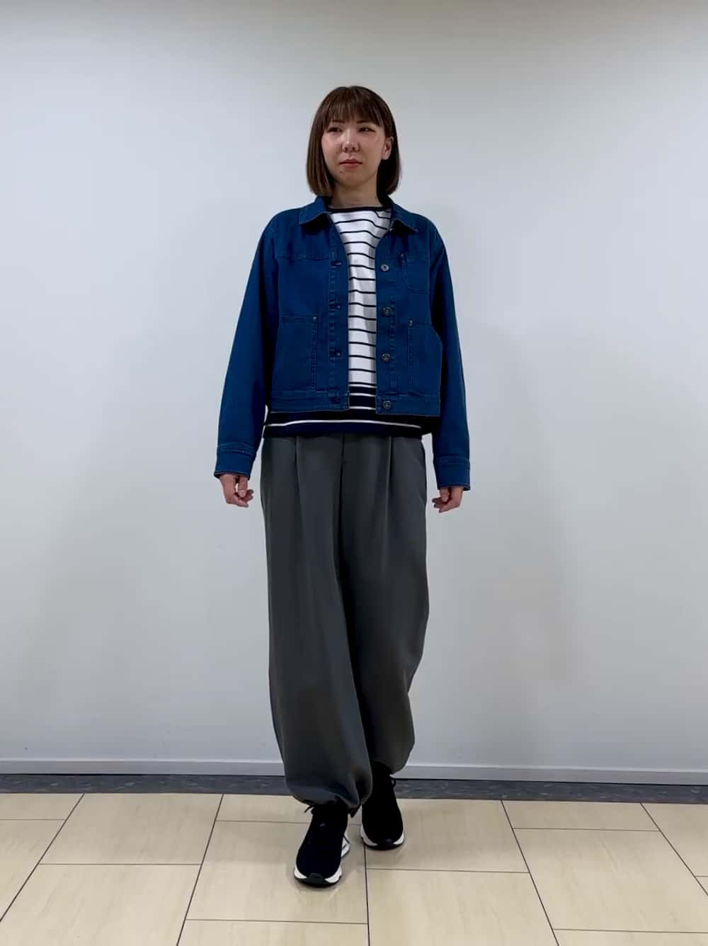 着用感:デニムの中でも薄手でストレッチ性があり、とても着心地のよいジャケットです。