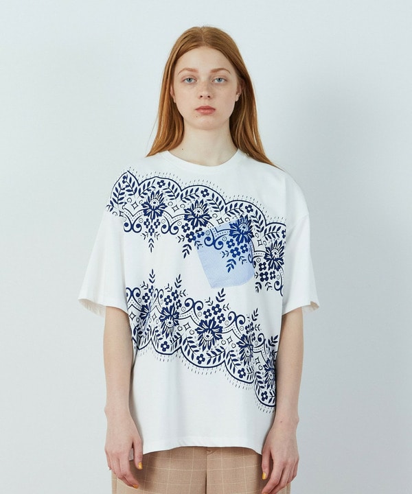 インナーには同じ柄を使ったTシャツを合わせて統一感を出しました。
