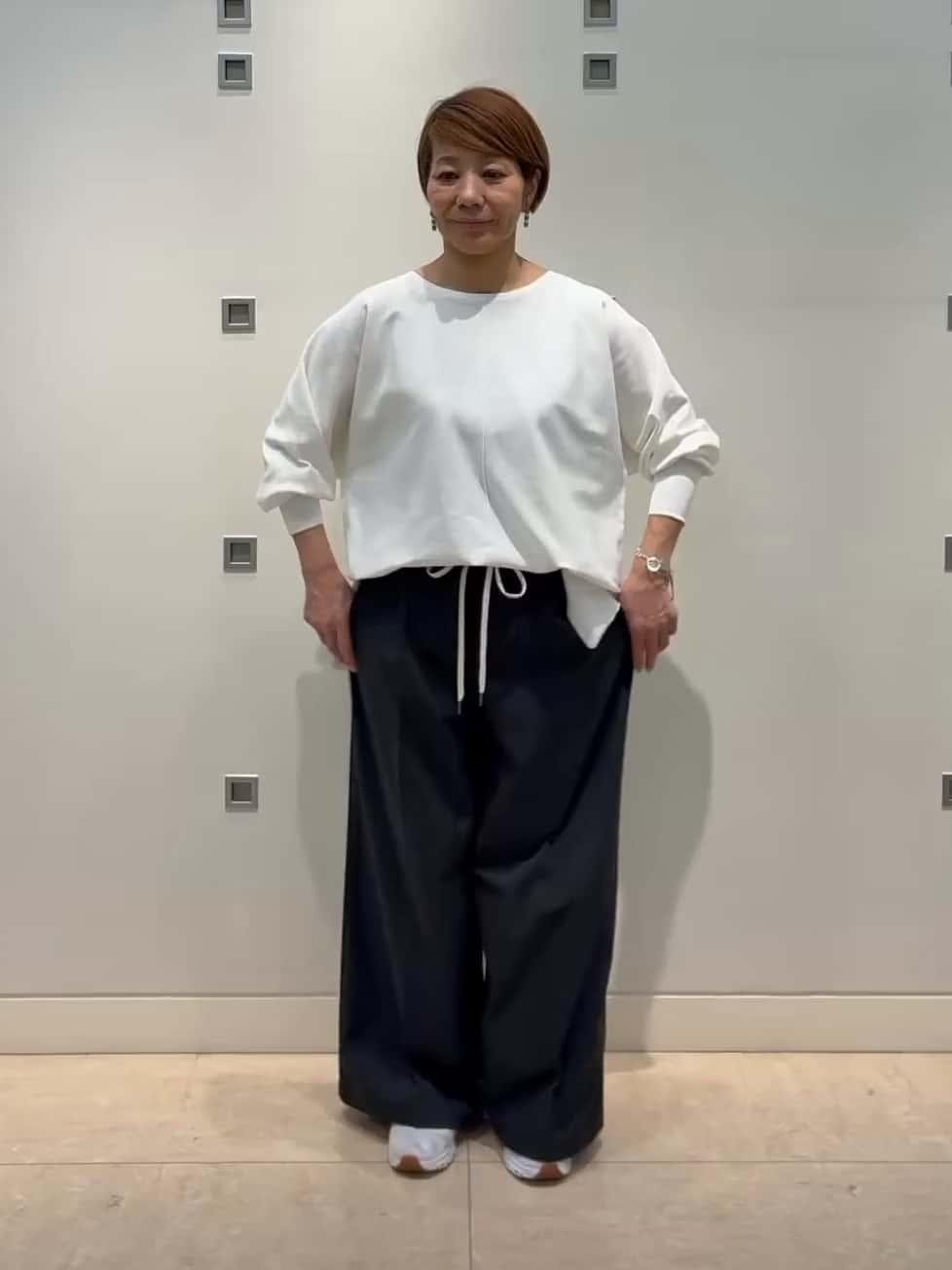 適度な伸縮性でゆったりしたサイズ感のニットです。着心地も良く、気軽に着られ着回しのできるお勧めの1枚です。62BKW330 2① ホワイト62FFP190 2② チャコール