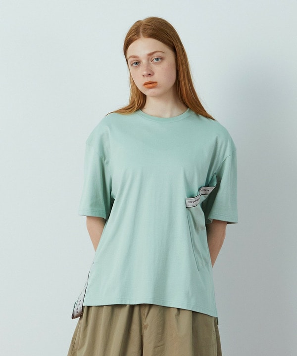 Tシャツのアクセントのロゴゴムテープや、ボトムに薄っすら入ったストライプがさり気ないアクセントになります。