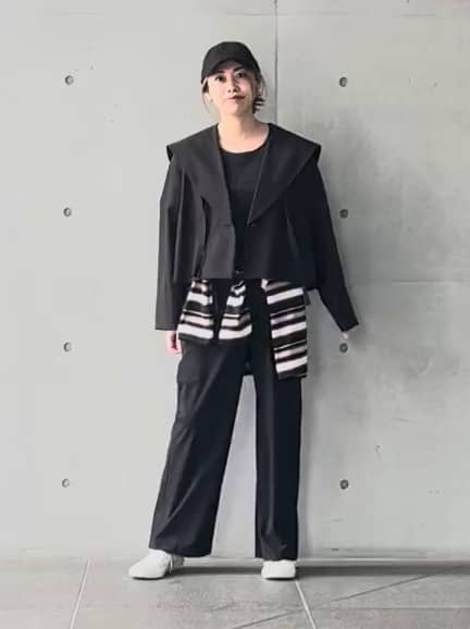 フォルムが特徴のセーラージャケットをラフに羽織って、スポーティな中に大人のカッコ良さを。セーラーカラーが顔周りを華やかに見せてくれるので、キャップ合わせでもカジュアルになりすぎません。