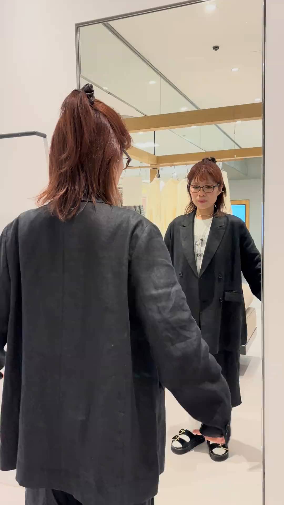 上品なリネン素材のブラックセットアップは、この春の一押しアイテム✨