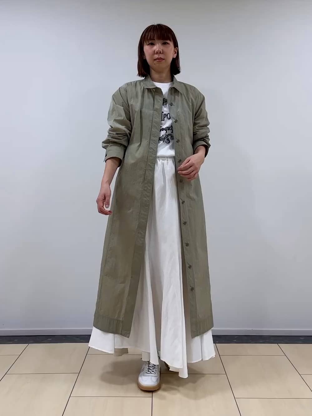着用感:丈長スカートなので、ご身長高めの方でもお足元が出過ぎずおすすめです。