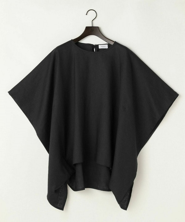 トップスはウォッシャブルリネンのポンチョ型ブラウス、パンツはさらりとドライなストレッチパンツ。