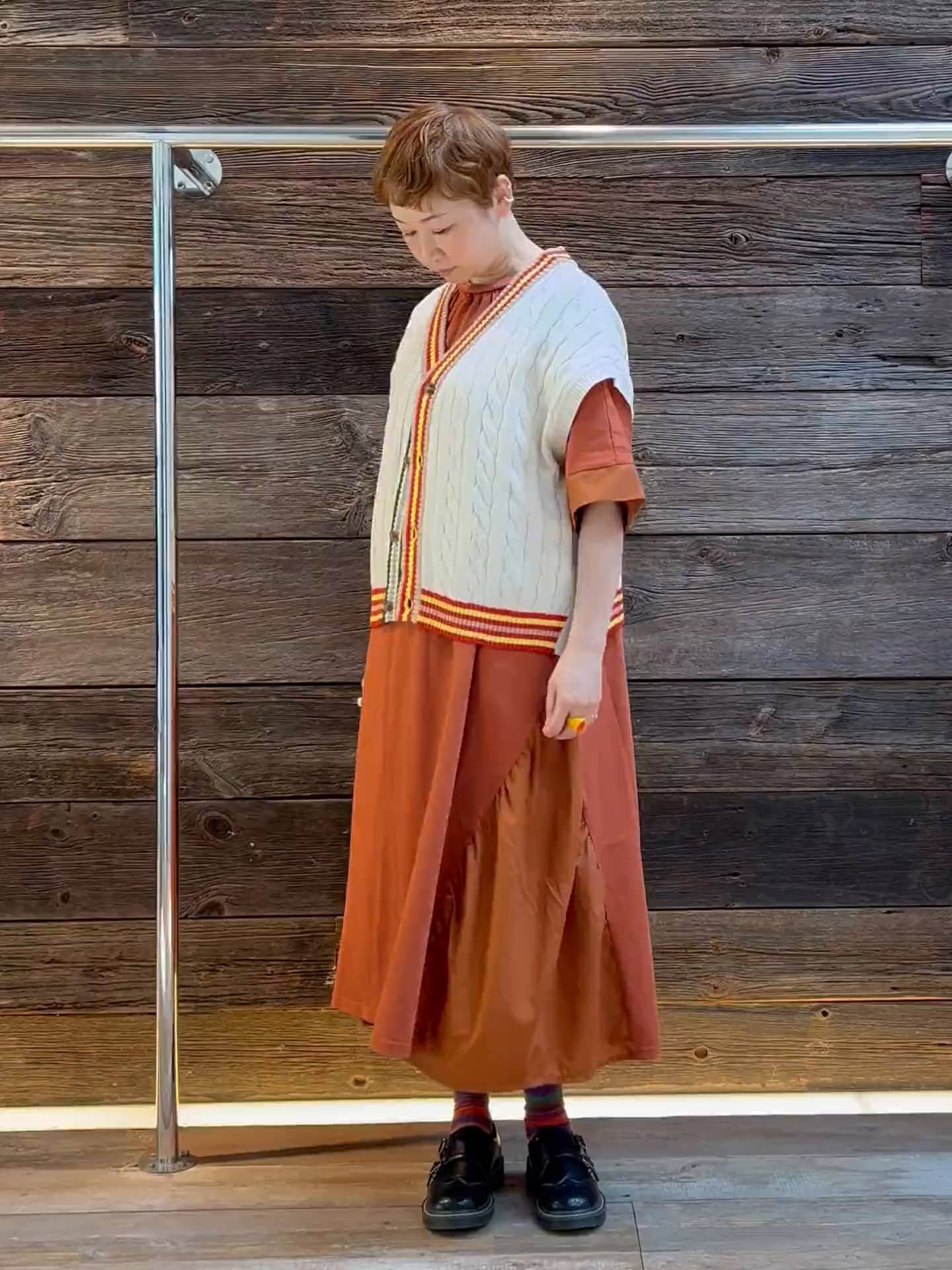 着用感 : やや短めですっきりとしたバランスのニットベスト。