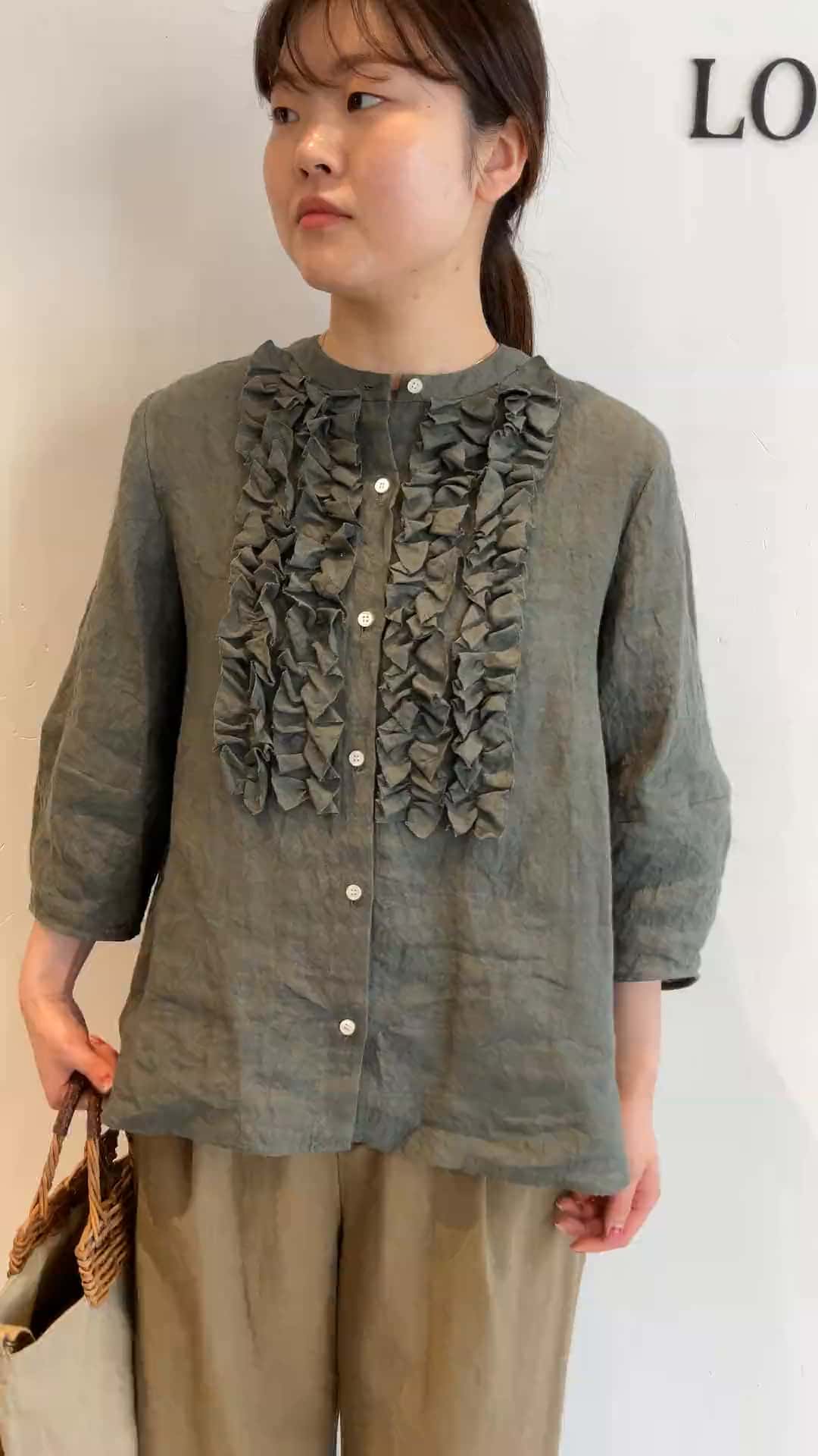 【3月ベストセラーブランド内1位】【3月お気に入り登録ブランド内1位】グランジリネンフリルディテールブラウス